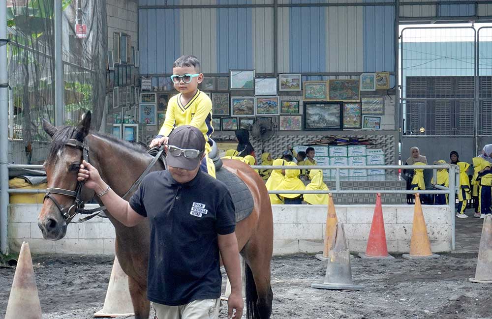 Suasana kegiatan berlangsung penuh keceriaan dan antusiasme. Anak-anak tampak gembira dan takjub saat melihat serta berinteraksi langsung dengan kuda-kuda tersebut. Meski sebagian murid sempat merasa takut di awal, pendampingan dari guru dan instruktur membuat mereka perlahan menjadi lebih berani dan percaya diri. Keberanian anak-anak semakin terlihat saat mereka mencoba aktivitas memanah dengan penuh semangat.