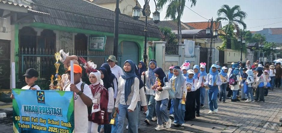 GRESIK – Suasana Alun-Alun Gresik tampak berbeda pada Kamis (18/12/2025). Ratusan siswa SD YIMI Gresik bersama para guru dan orang tua berkumpul di Pendopo Alun-Alun untuk menggelar kegiatan “Semarak Prestasi”. Acara ini dilaksanakan sebagai momentum akhir semester ganjil sekaligus memperingati Hari Bela Negara dan Hari Kesetiakawanan Sosial Nasional (HKSN).
