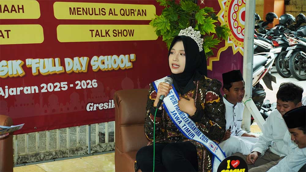 Talkshow tersebut menghadirkan narasumber istimewa, yaitu Lukita Aisyah Anggraini, alumni SMP YIMI Gresik yang telah menorehkan prestasi membanggakan sebagai Runner Up II Putri Pariwisata Jawa Timur 2025. Kehadiran alumni berprestasi ini menjadi motivasi tersendiri bagi para peserta didik untuk terus mengembangkan potensi diri dan berani meraih prestasi.